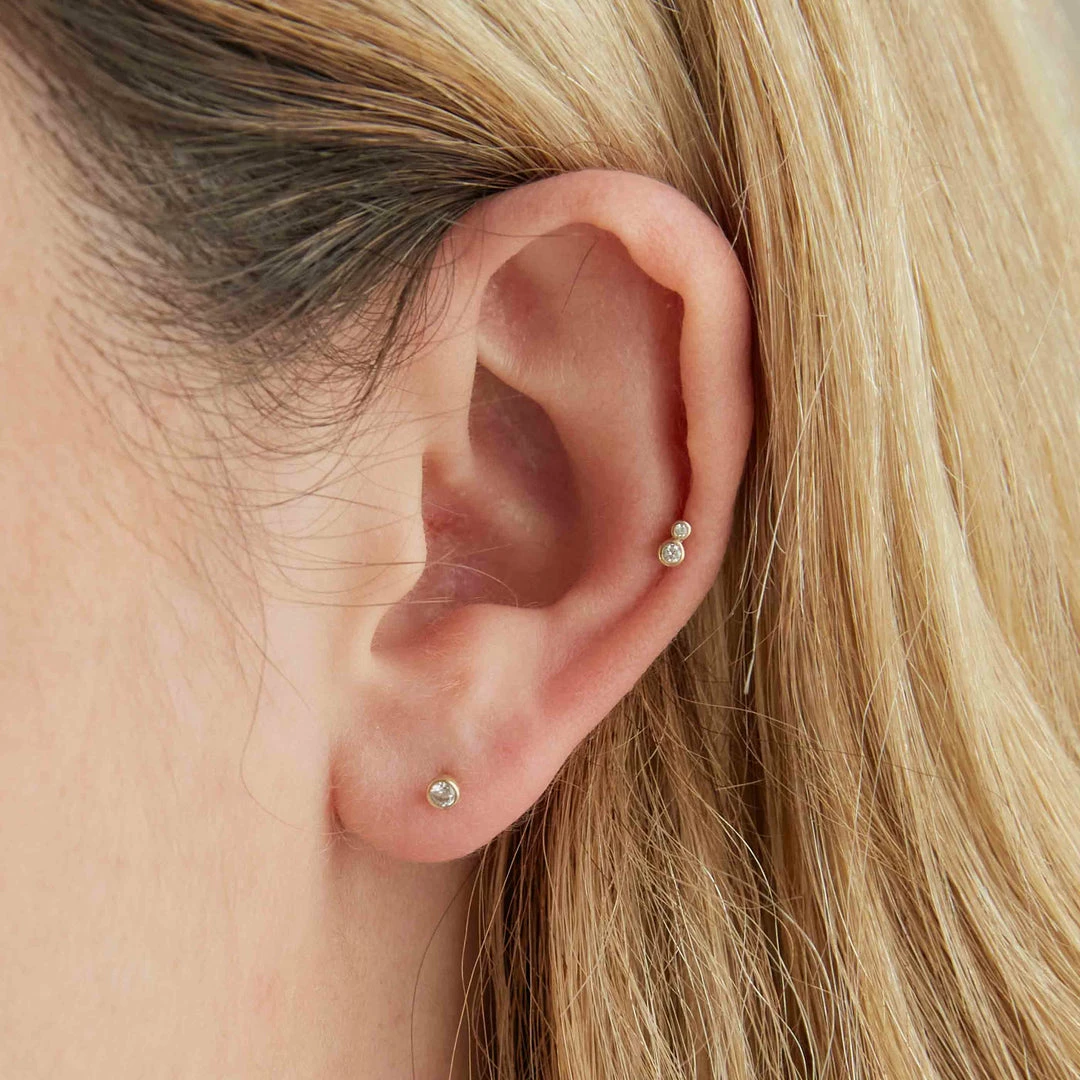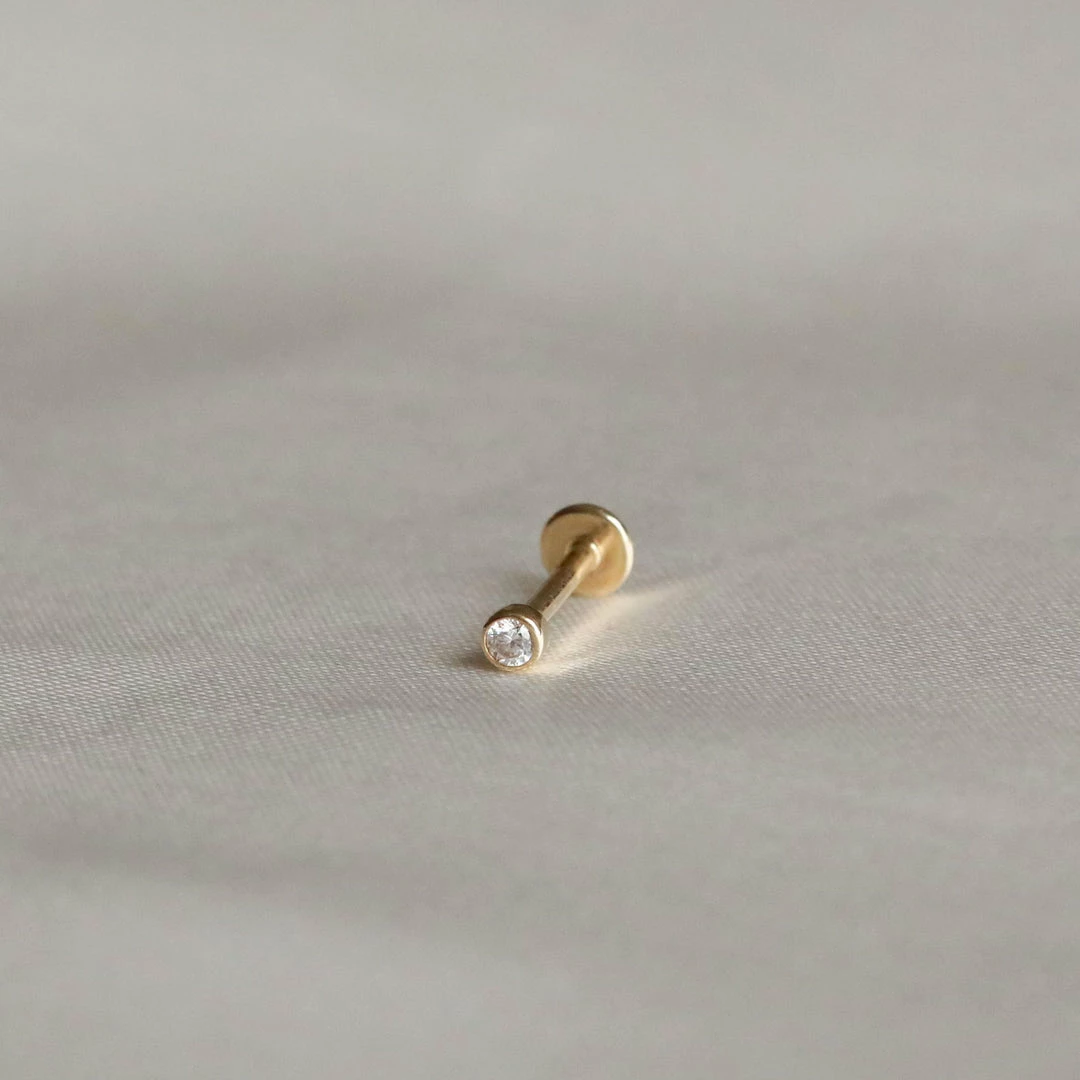 Refresh your stack with piercing jewellery to keep forever ~ the Solid Gold Gem Piercing Stud will be worn year after year. It’s in a simple circular setting with a dainty crystal inlay to add sparkle. We recommend that you wear this in your healed lobe, tragus, conch or helix piercing.