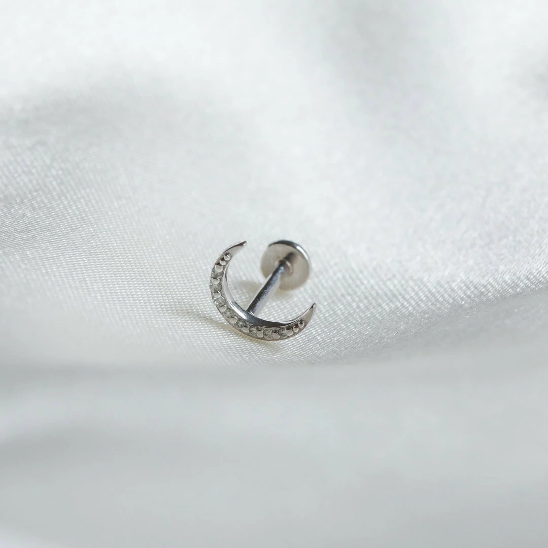 A mystic update to your piercing jewellery ~ the Solid White Gold Diamond Moon Piercing Stud features paved lab-grown diamonds for a sparkling finish. Wear this in your lobe, conch or helix piercing for a celestial statement.