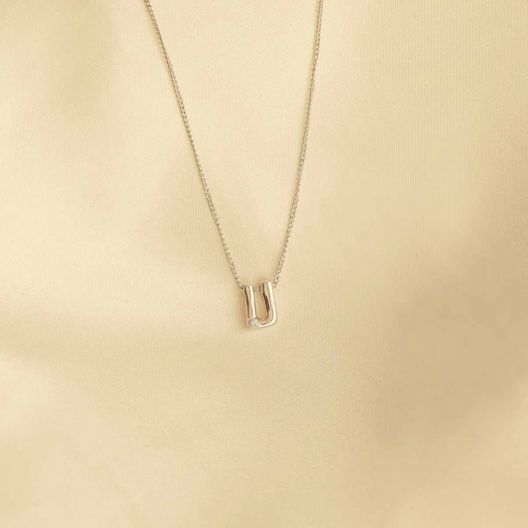 Astrid & Miyu U Initial Pendant Necklace In Silver With U