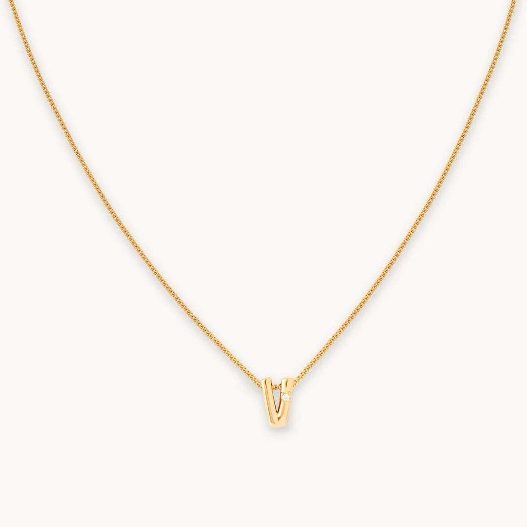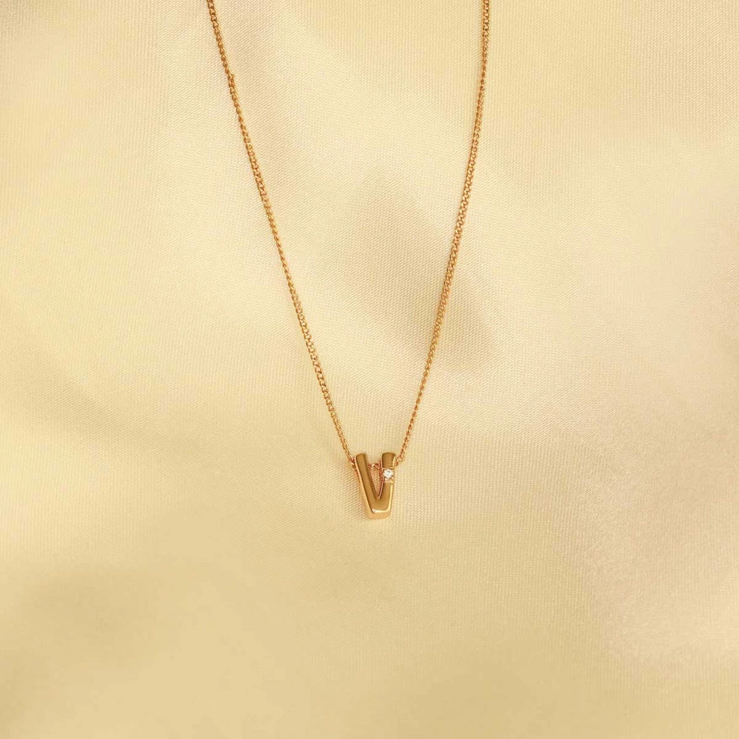 Astrid & Miyu V Initial Pendant Necklace In Gold With V
