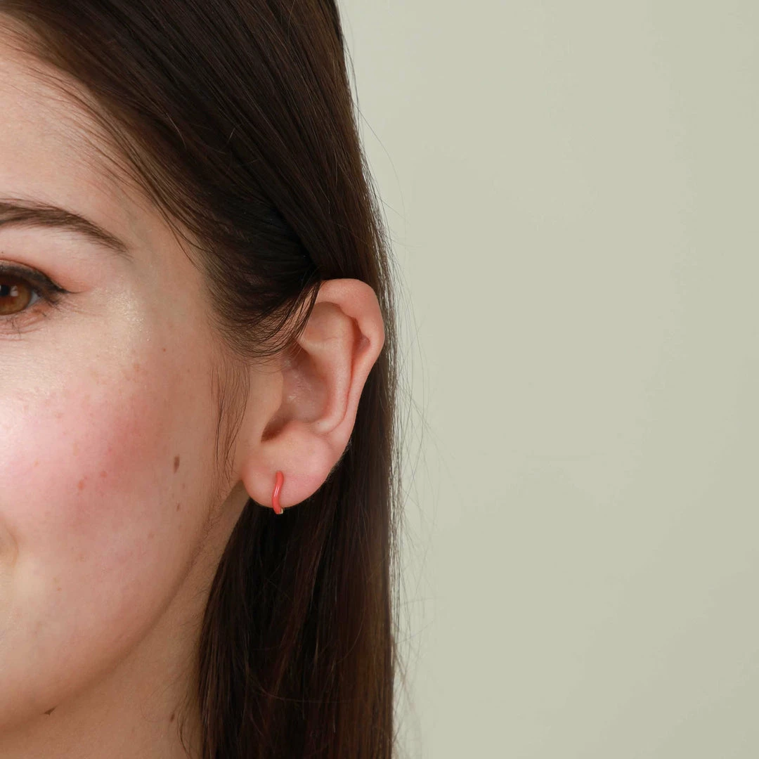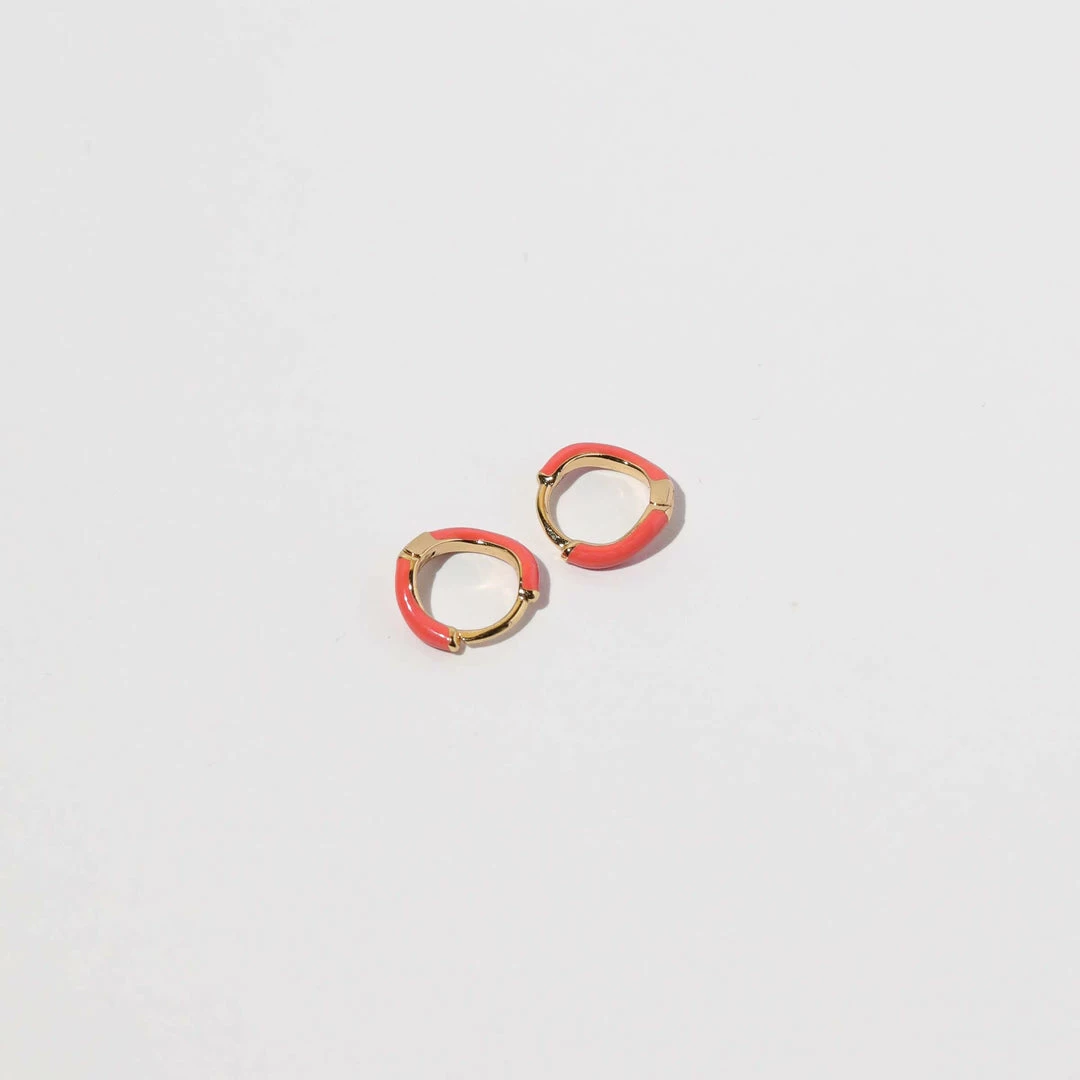Colourful stacks all summer long. The Wave Coral Enamel Huggies are in a curvy shape with a vibrant coral enamel coating. They add a pop of colour to your collection, whilst still fitting in with your other favourite earrings. Pair these with the Wave Huggies in your plating of choice.