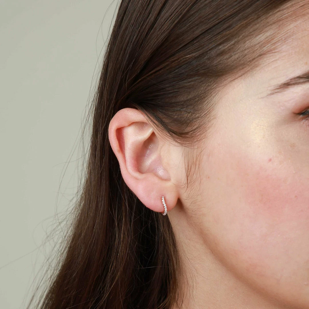 Curved to flatter the shape of your ear, the Wave Crystal Huggies will fit like they’re made just for you. Featuring dainty cubic zirconias to add a sparkly finish, these are the perfect everyday addition to your jewellery box. Pair with the Wave Huggies and Wave Ear Cuff for a flowing stack.