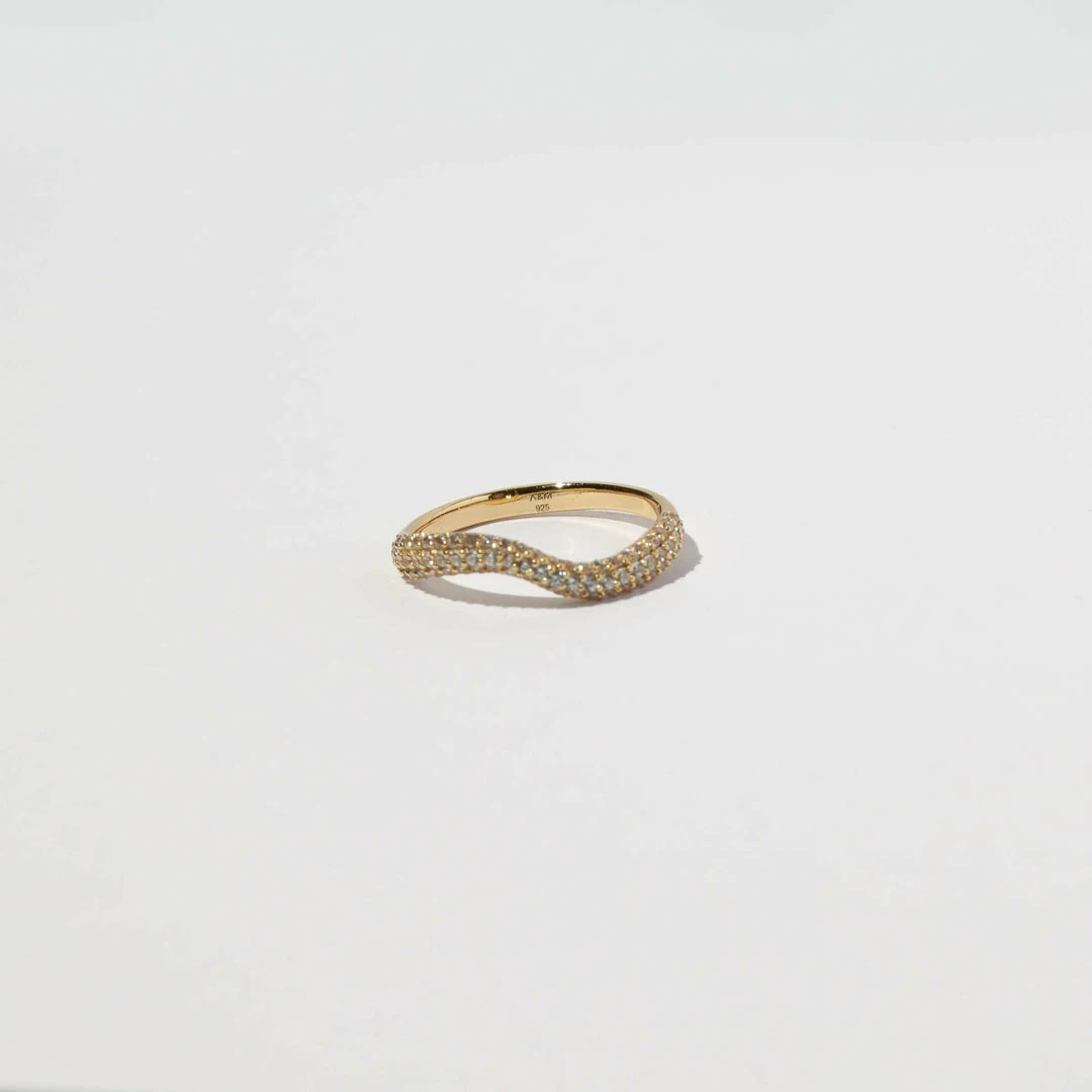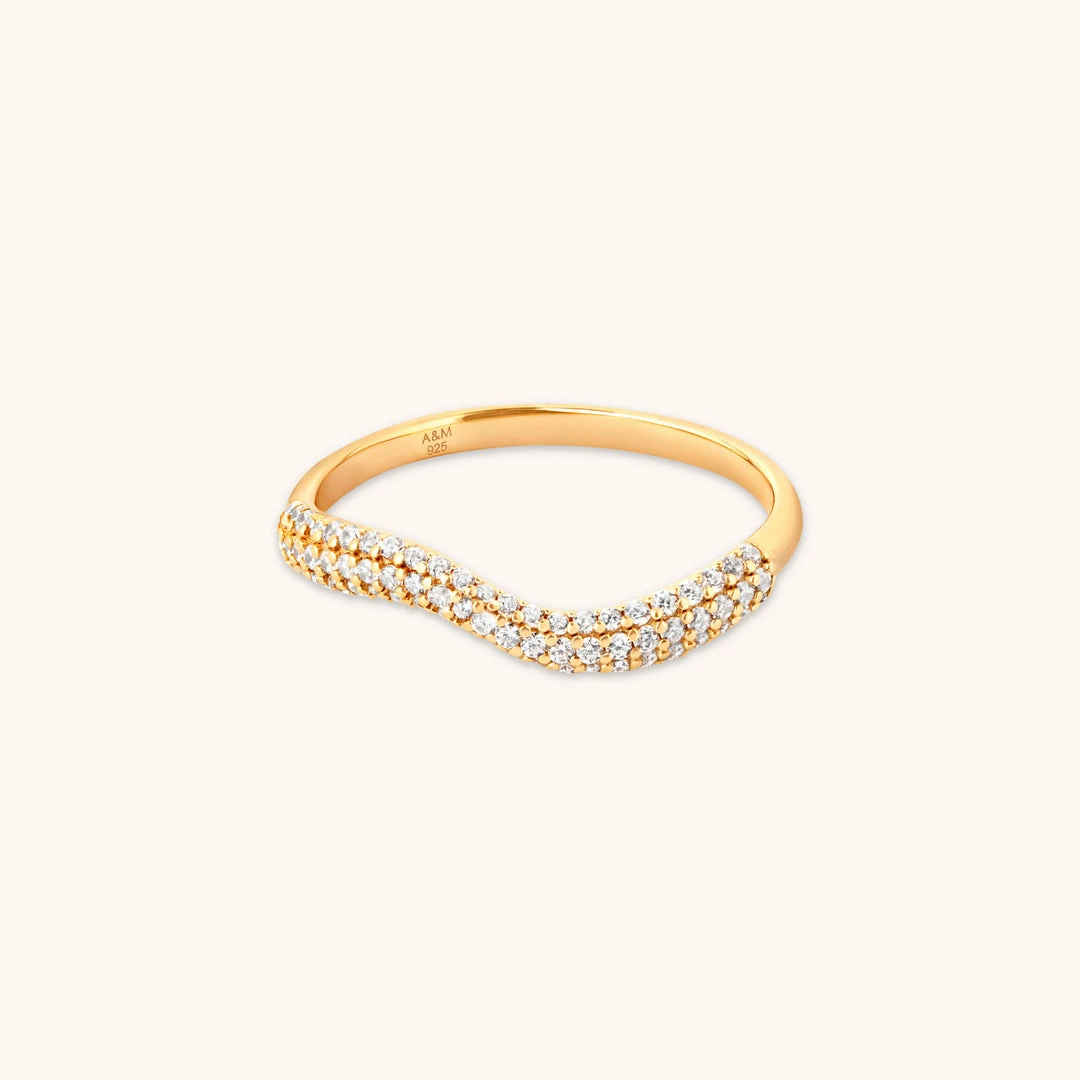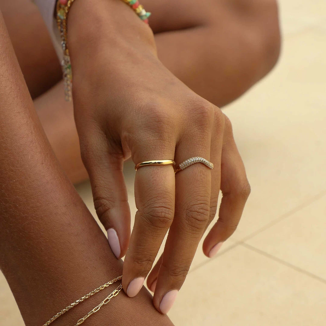 Ring stacking 101: sparkly touches are essential. The Wave Crystal Ring in Gold is in a curved shape with dainty cubic zirconias. It’s the perfect stacking piece, as you can either wear it alone for a sleek look or with chunkier styles. Pair with the Wave Ring for a harmonious ring stack.