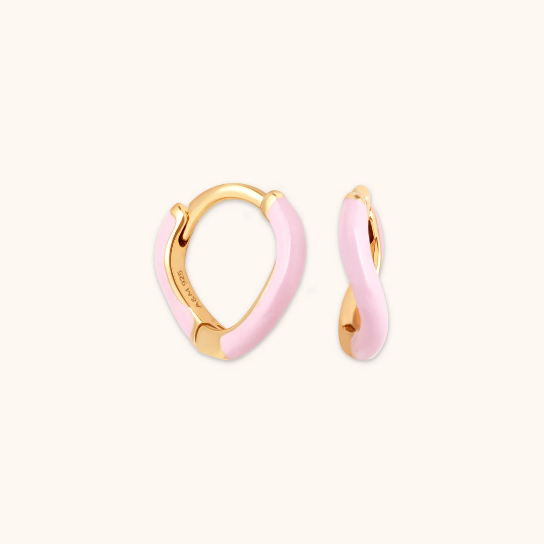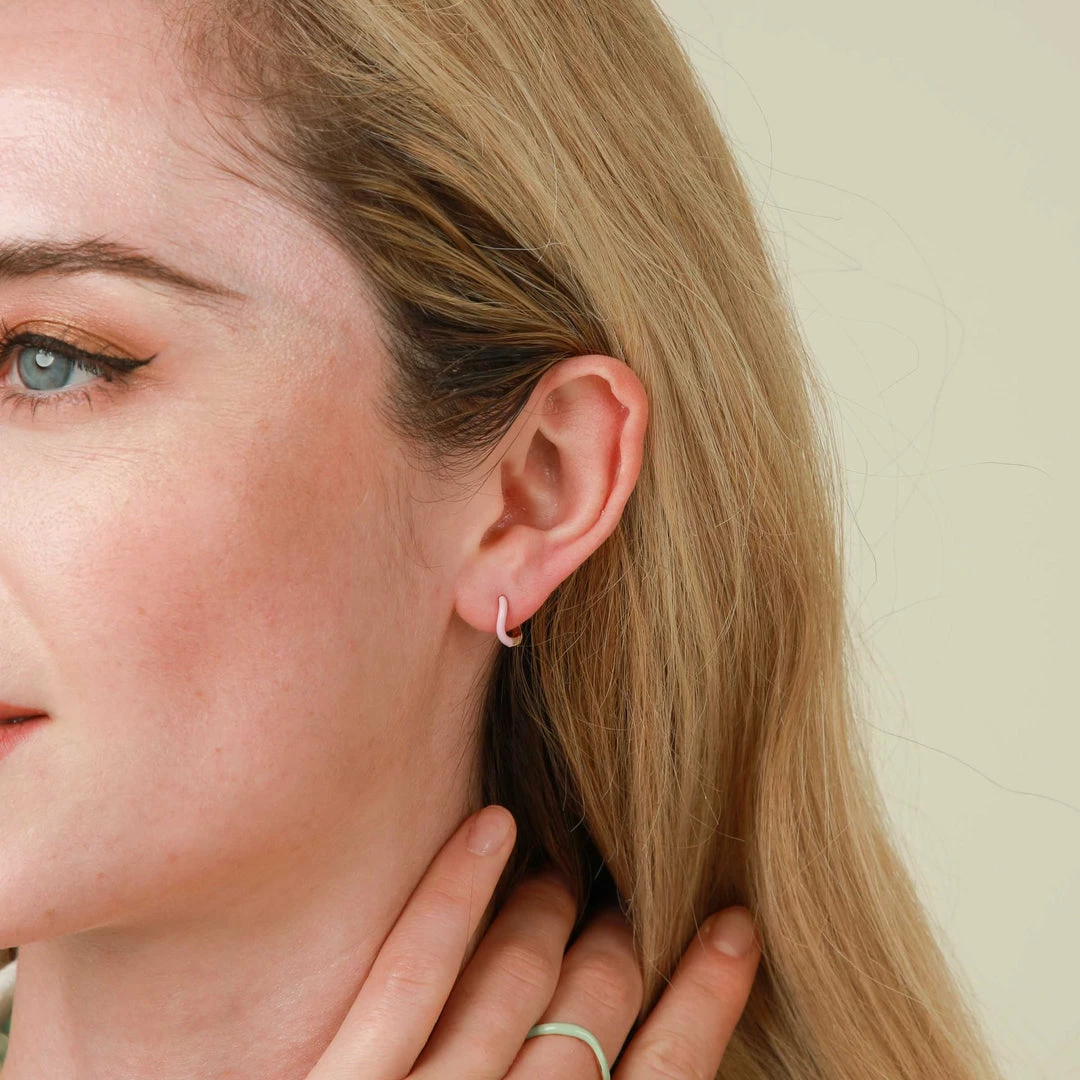 Colourful stacks all summer long. The Wave Pink Enamel Huggies are in a curvy shape with a pastel pink enamel coating. They add a pop of colour to your collection, whilst still fitting in with your other favourite earrings. Pair these with the Wave Huggies in your plating of choice.