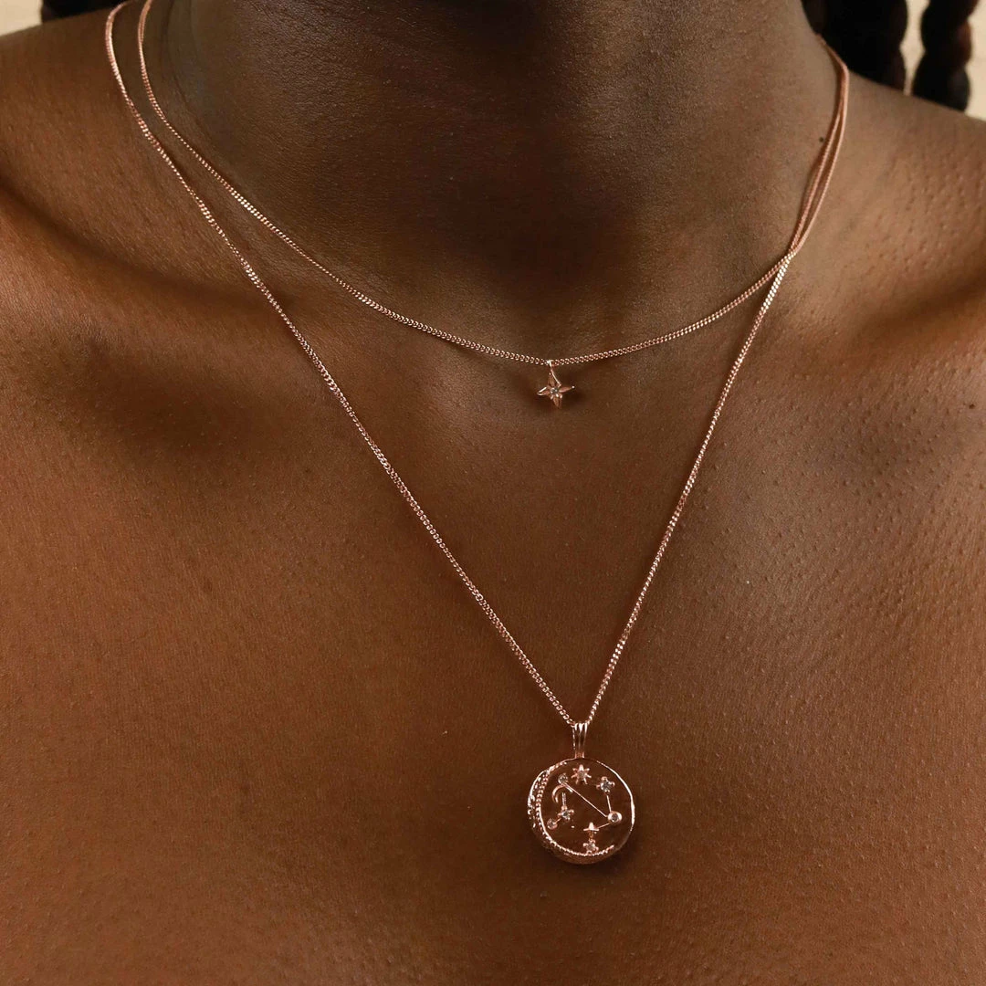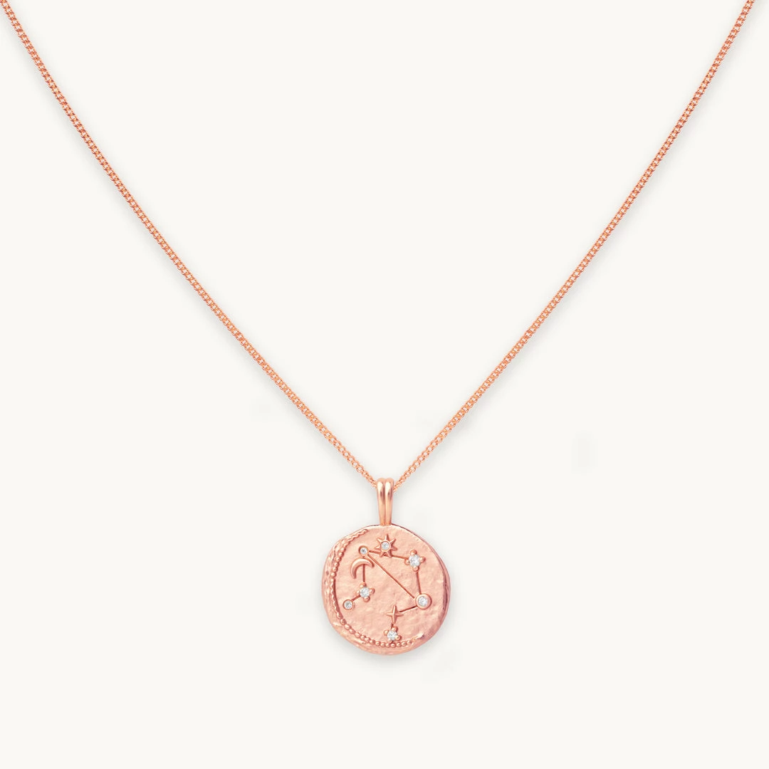 The Zodiac Libra Pendant Necklace in Rose Gold features sparkling cubic zirconias to symbolise the Air element. Libras are smart, confident and love the finer things in life. Treat the Libra in your life with the gift of sparkle.