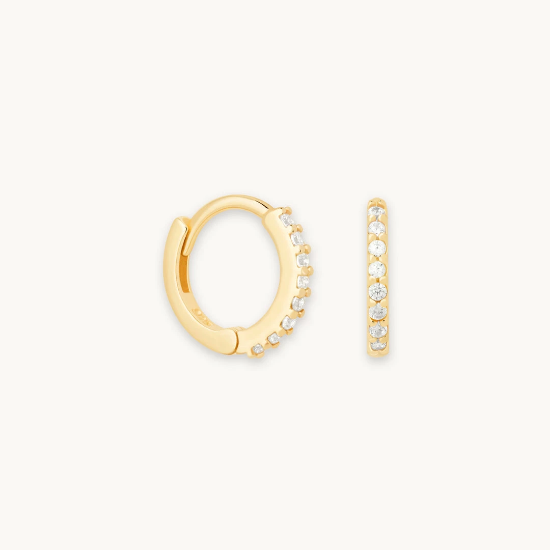 Give your stack the sparkle they deserve with these Crystal Jewelled Huggies in Gold. Paved in sparkly cubic zirconias, you can wear these huggies alone for a subtle sparkle or stack them with the matching studs.