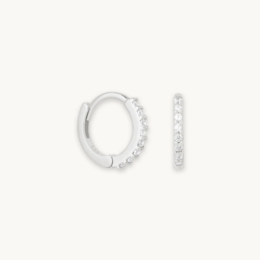 Give your stack the sparkle they deserve with these Crystal Jewelled Huggies in Silver. Paved in sparkly cubic zirconias, you can wear these huggies alone for a subtle sparkle or stack them with the matching studs.