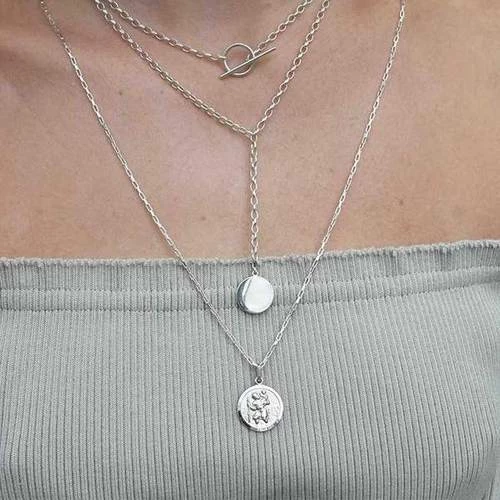 The classic religious necklace with a modern twist. Stack up the St. Christopher’s Circle pendant with our other Boyfriend Collection necklace for a layered up look.