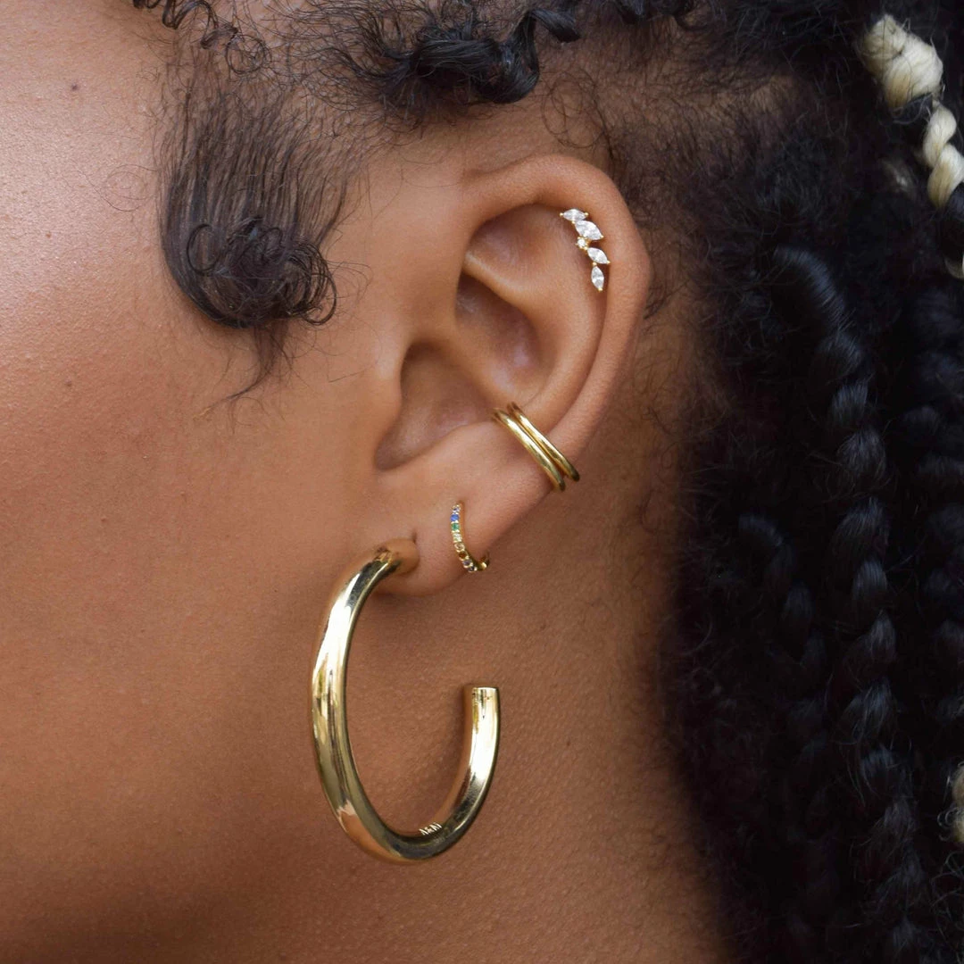 You already know we absolutely love a piercing and our latest barbell earring range is for all of you wanting to add a little glam to your new piercing. Here is a “how to”.