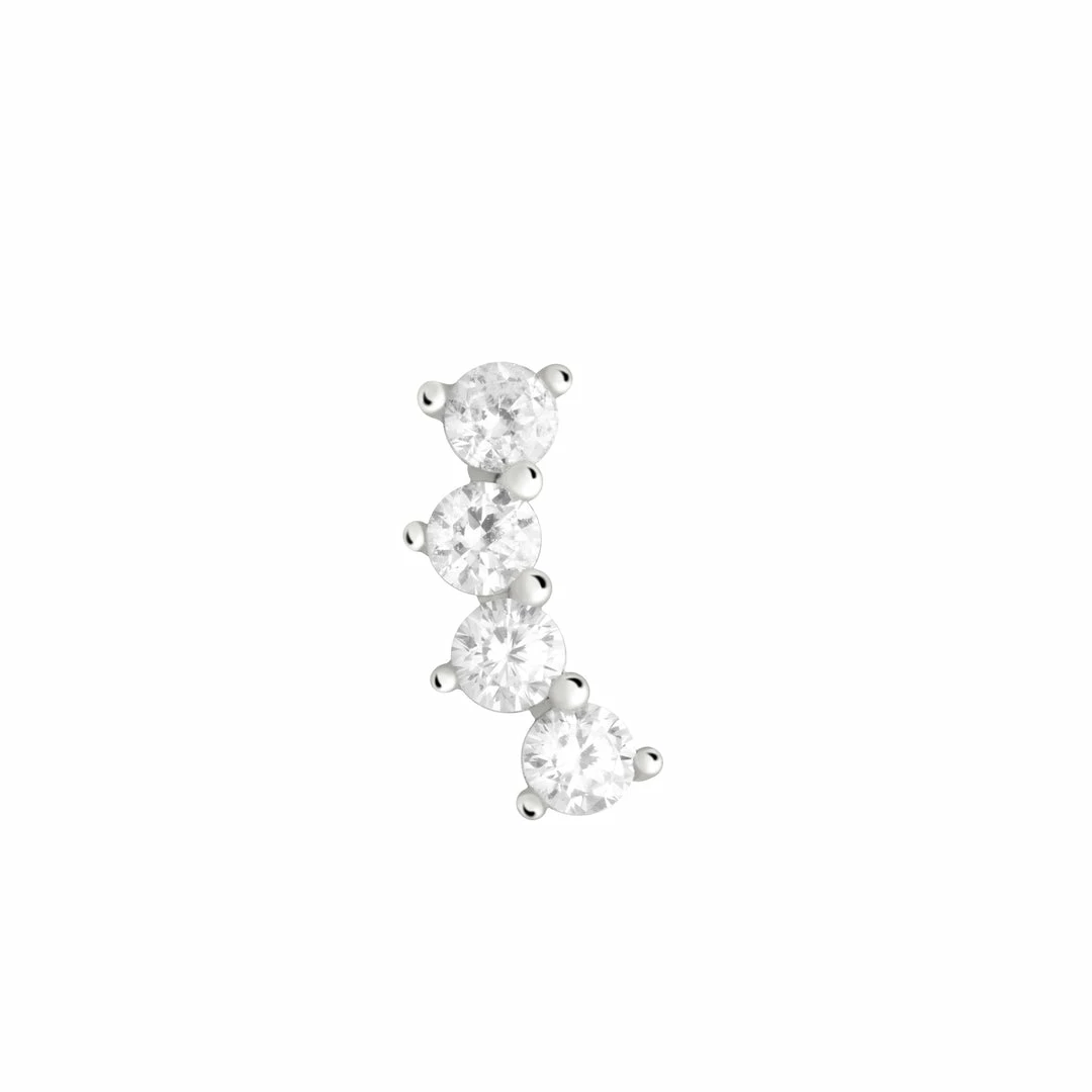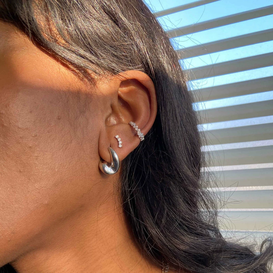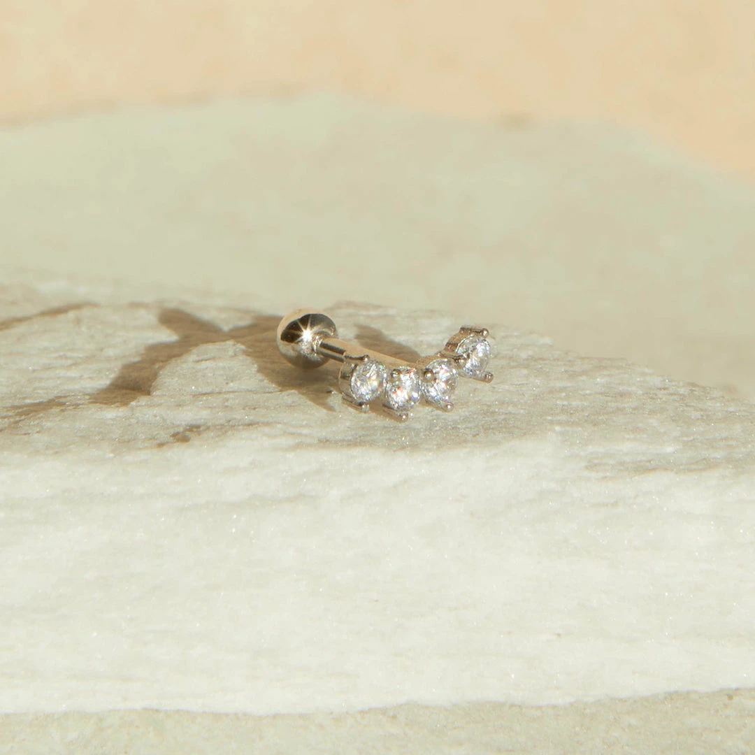 Inspired by your sparkle, the Curved Crystal Barbell in Silver, featuring a trail of four sparkling cubic zirconias to let your piercings do the talking. The curved shape enhances the curves and shape of your ear perfectly – so it’ll fit you like a glove. Don’t have loads of piercings? These look great in your lobes too.