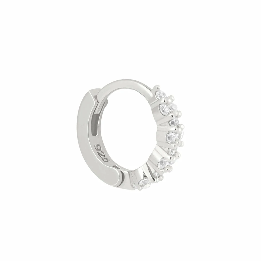 Steming inspriration from our best seller, the Gem Huggies, this gorgeoues piece was delveloped. The Dainty Crystal Clicker in Silver is designed to be clicked around your cartilage and shimmer all night long. Made from Sterling Silver. These hoops are teeny tiny so please check the measurements under details. *Please note – Earrings are non returnable due to hygiene reasons.
