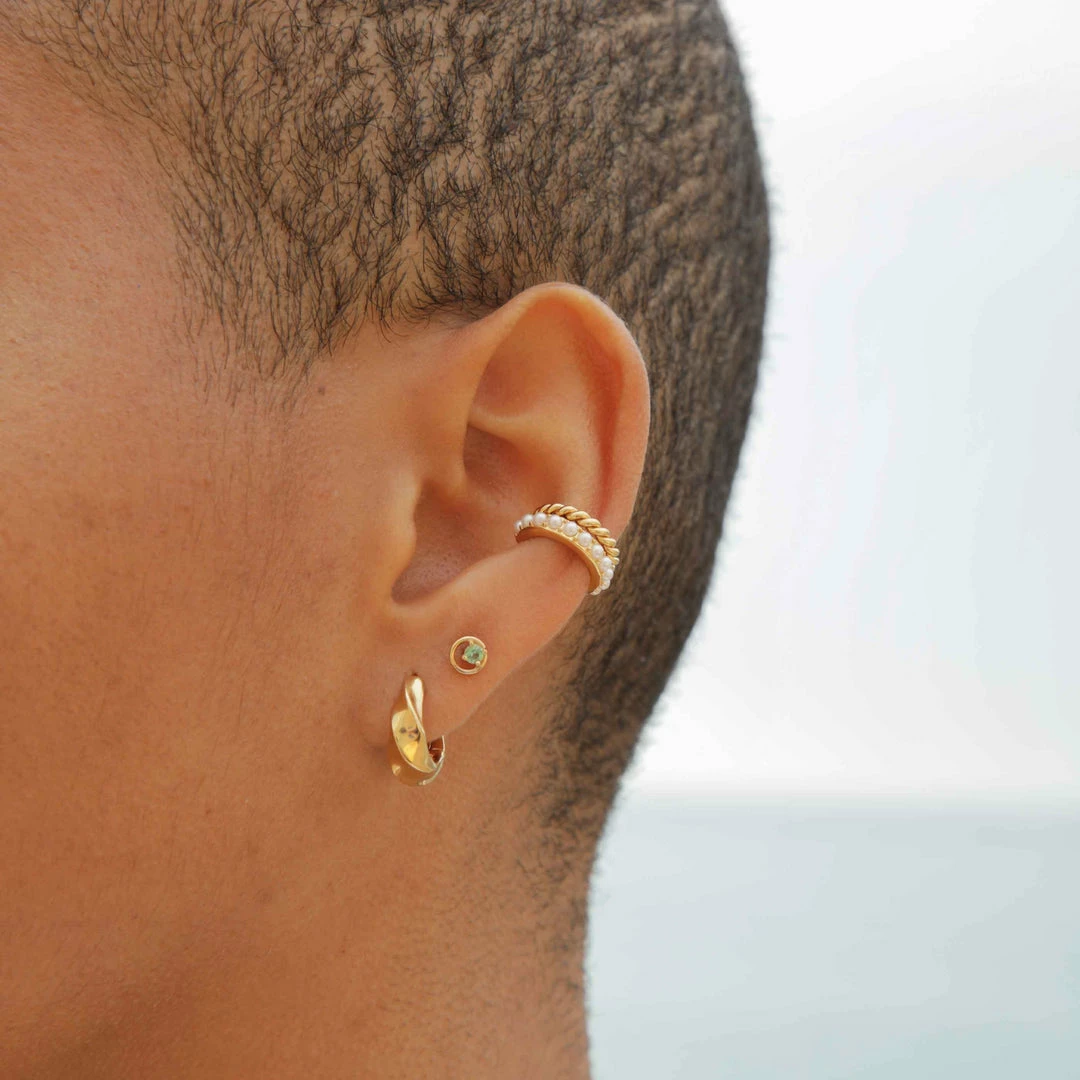 Beautifully unique, the Elemental Hoops in Gold brings a sculptural texture to your ear stack. These hoops are statement & curvy in all the right places. So whether you’re wearing them alone, or with huggies & barbells in your other piercings, they will always be an eye-catching addition. Want to complete the look? Wear these hoops with our Elemental Huggies & Elemental Ring for a full Una Collection moment.
