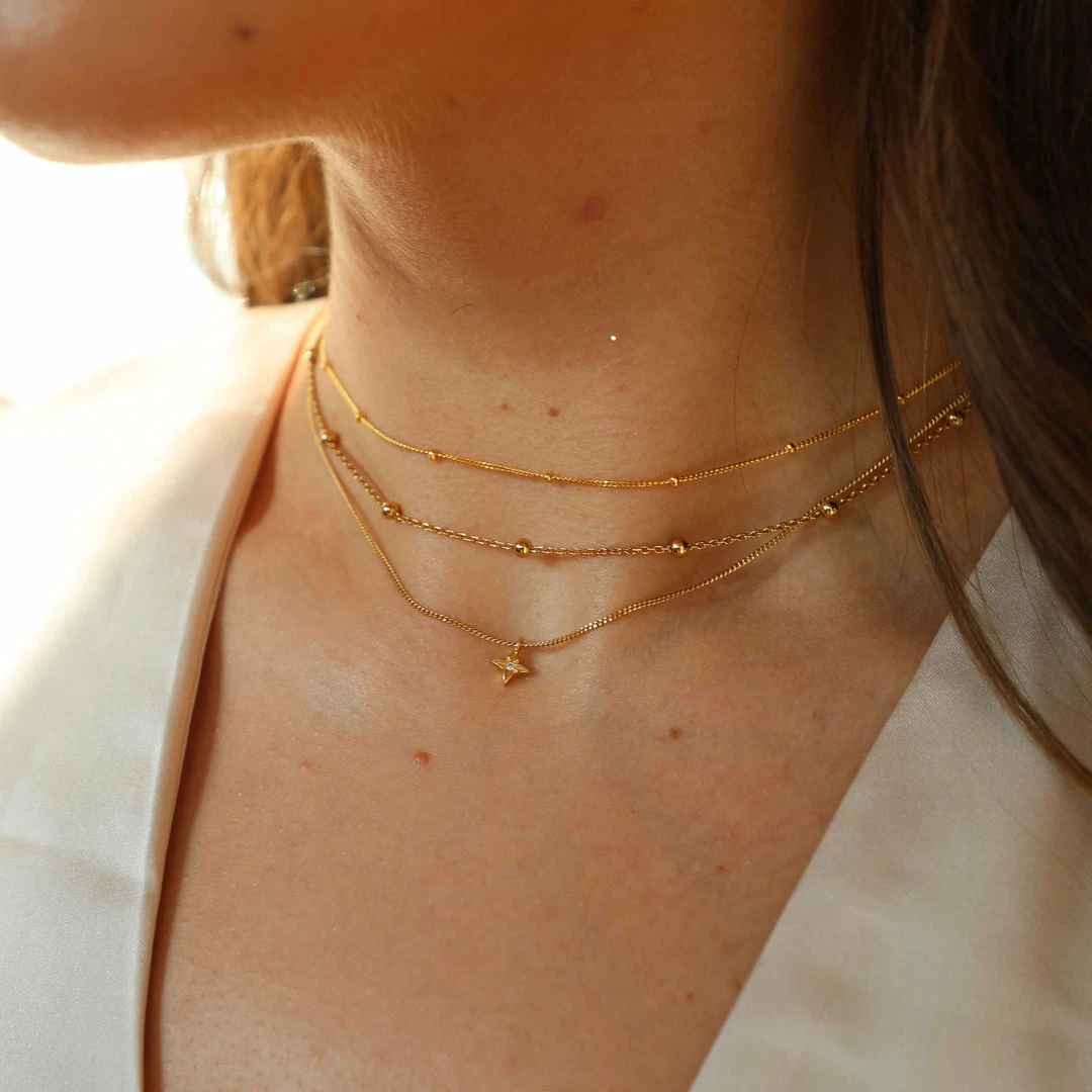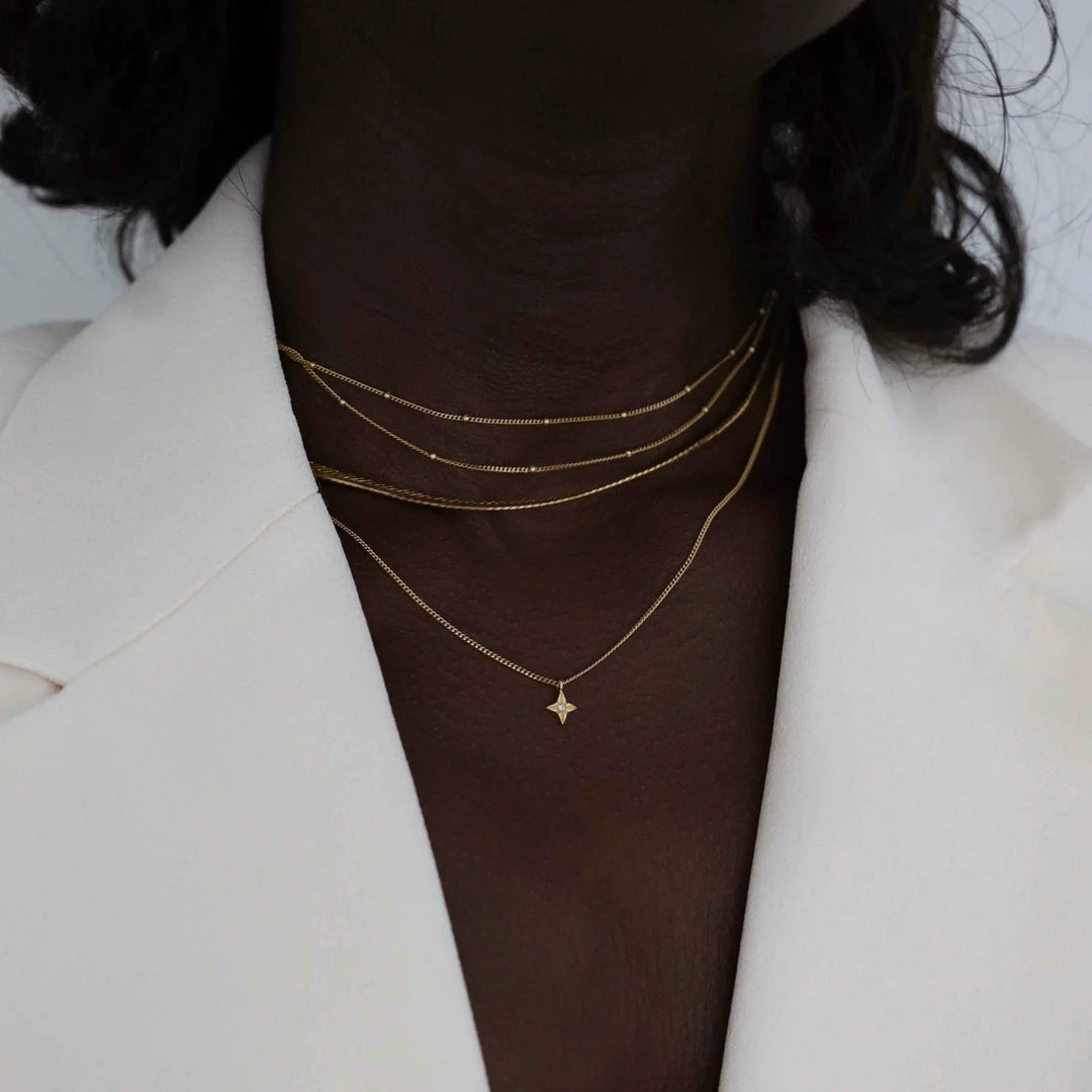 The reign of the choker continues. The small beaded choker keeps it extra simple and a jewellery staple you will forget you’re even wearing. Adjust the length for a different feel each day and keep your look cool and effortless by teaming with the basic halo pendant and coin necklace.Â