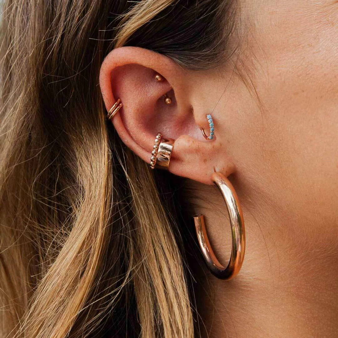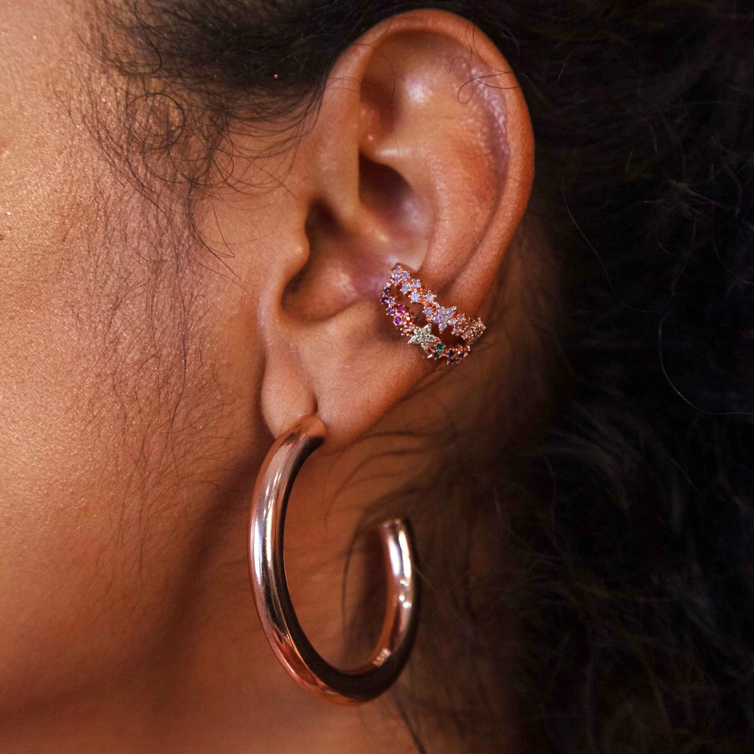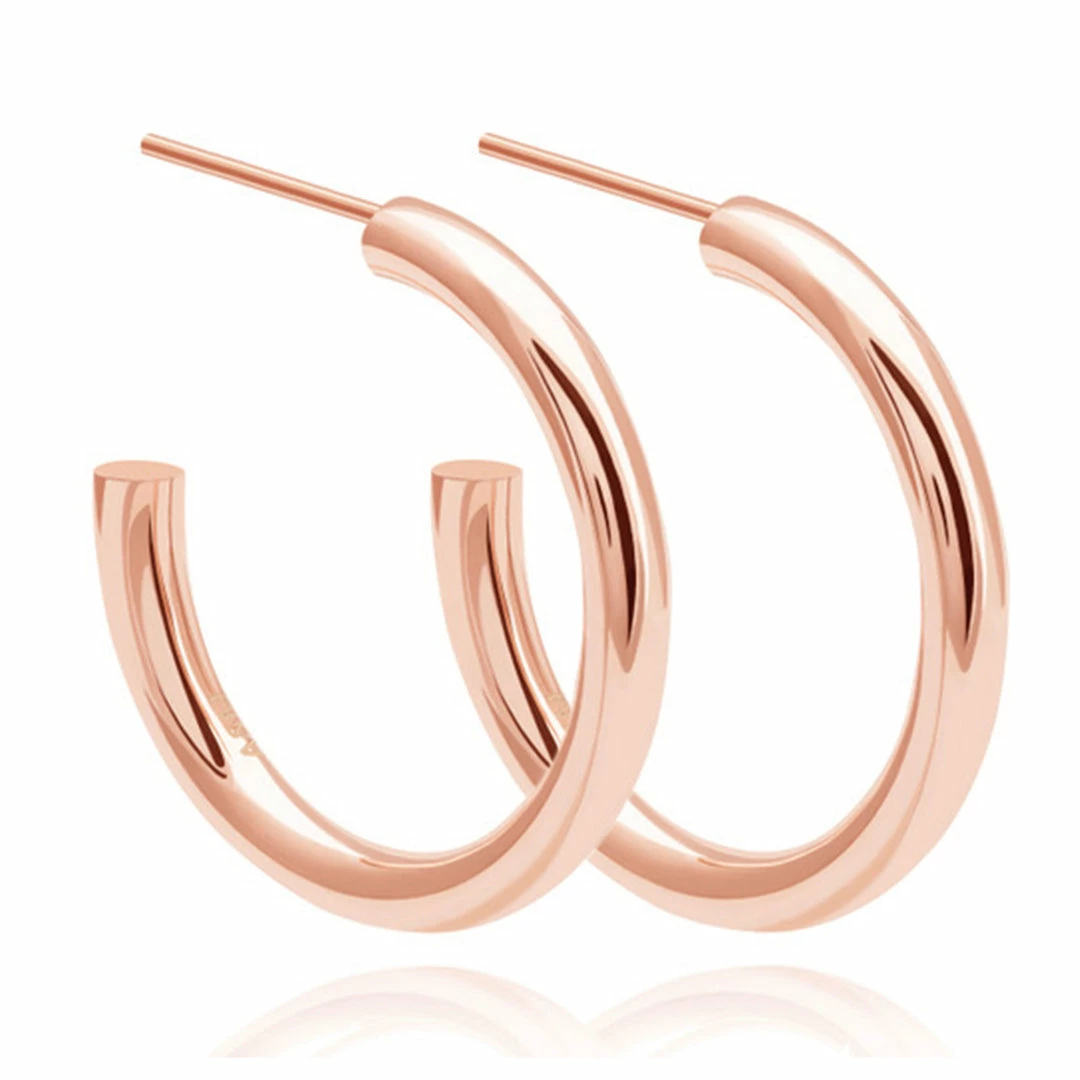 The large rose gold hoop earrings may be understated but they’re an undeniable classic jewellery essential for every fashion ‘it girl’. Make an effortless statement with these easy to wear big gold hoop earrings. Perfect on their own or team with our ear cuffs for a more curated look.