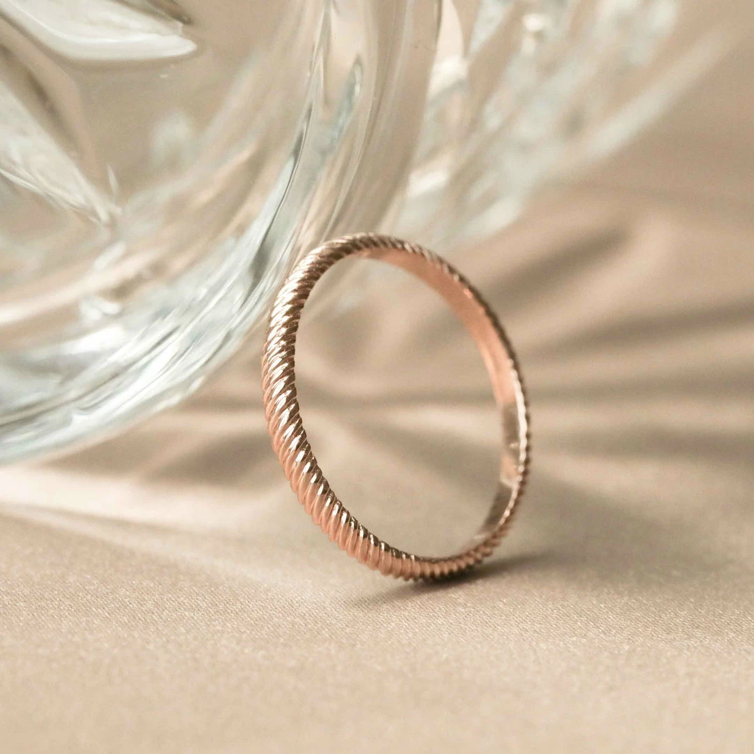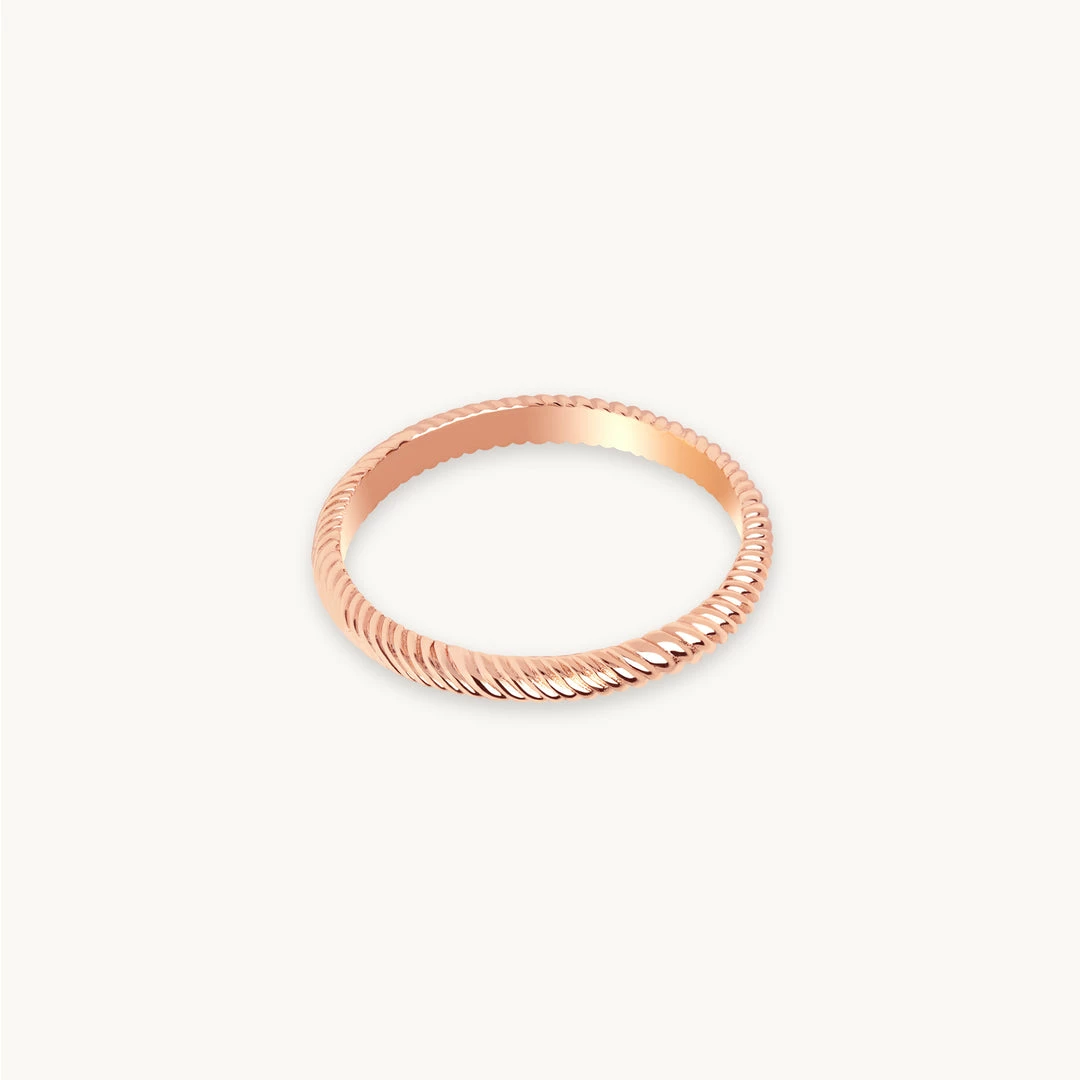 A ring stacking staple you won’t be able to live without… Introducing the Etched Band Ring in Rose Gold. It’s in a simple band style, but is elevated with a luxe texture – it’ll look great with any of our more statement rings, or to stack with your favourite rings in your own collection. Add the Etched Crystal Hoop Earrings to complete the Aurora look.
