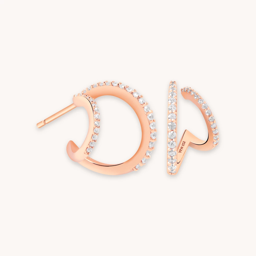 Two hoops in one? Yes please. Say hello to the Illusion Crystal Hoops in Rose Gold. It features one larger hoop attached to a smaller one, for the look of a gradient stack. Both hoops are paved in cubic zirconias, so it catches the light for a statement look. Want more of our illusion pieces? Check out our Mini Illusion Crystal Ear Cuff & Illusion Stud Earrings.