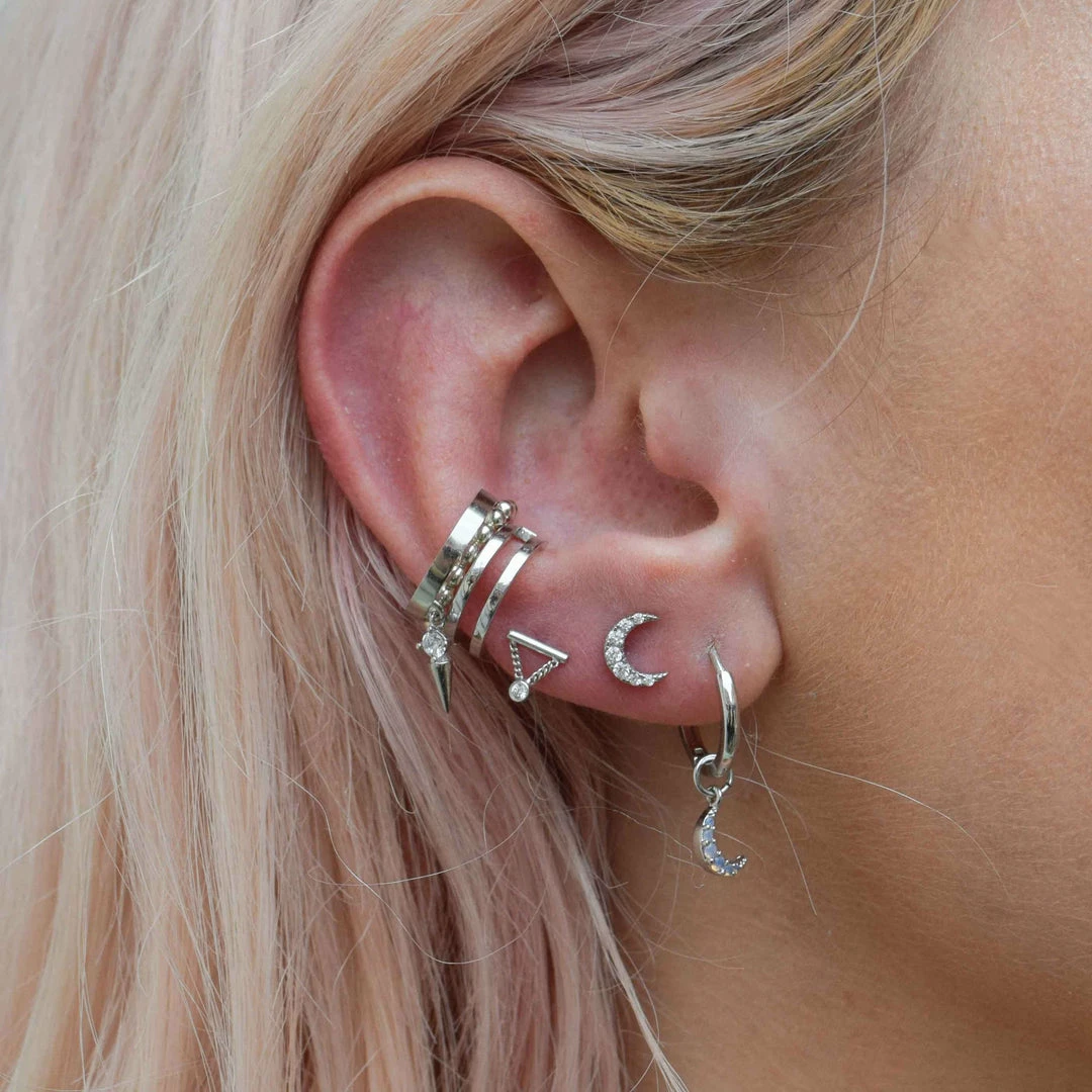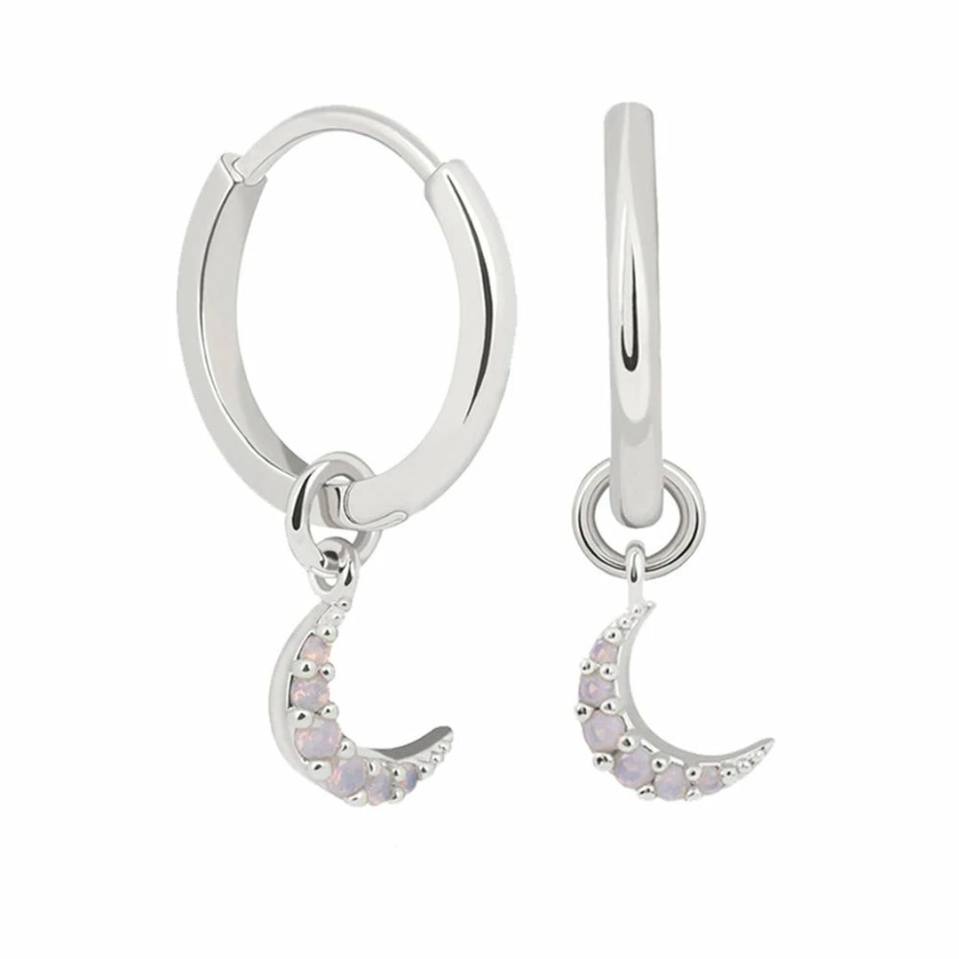 The perfect minimal statement. Team the Mystic Moon Pendant Earrings in silver with huggies and ear cuffs for the ultimate stacking look. The charm on this hoop can be either left on or removed. Please be careful when handling these hoops to ensure that the charm isn’t lost.Â