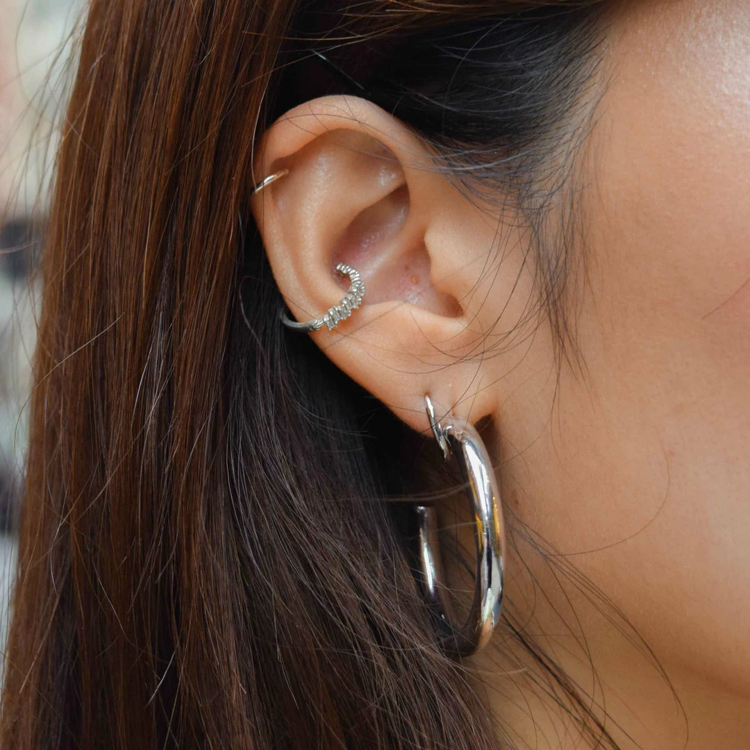 Keep it oh-so-simple with the Mystic Simple Hoops in Silver. The perfect everyday partner, these are the hoops you won’t be able to live without. Stack them up with huggies, ear cuffs and barbells for a curated vibe.