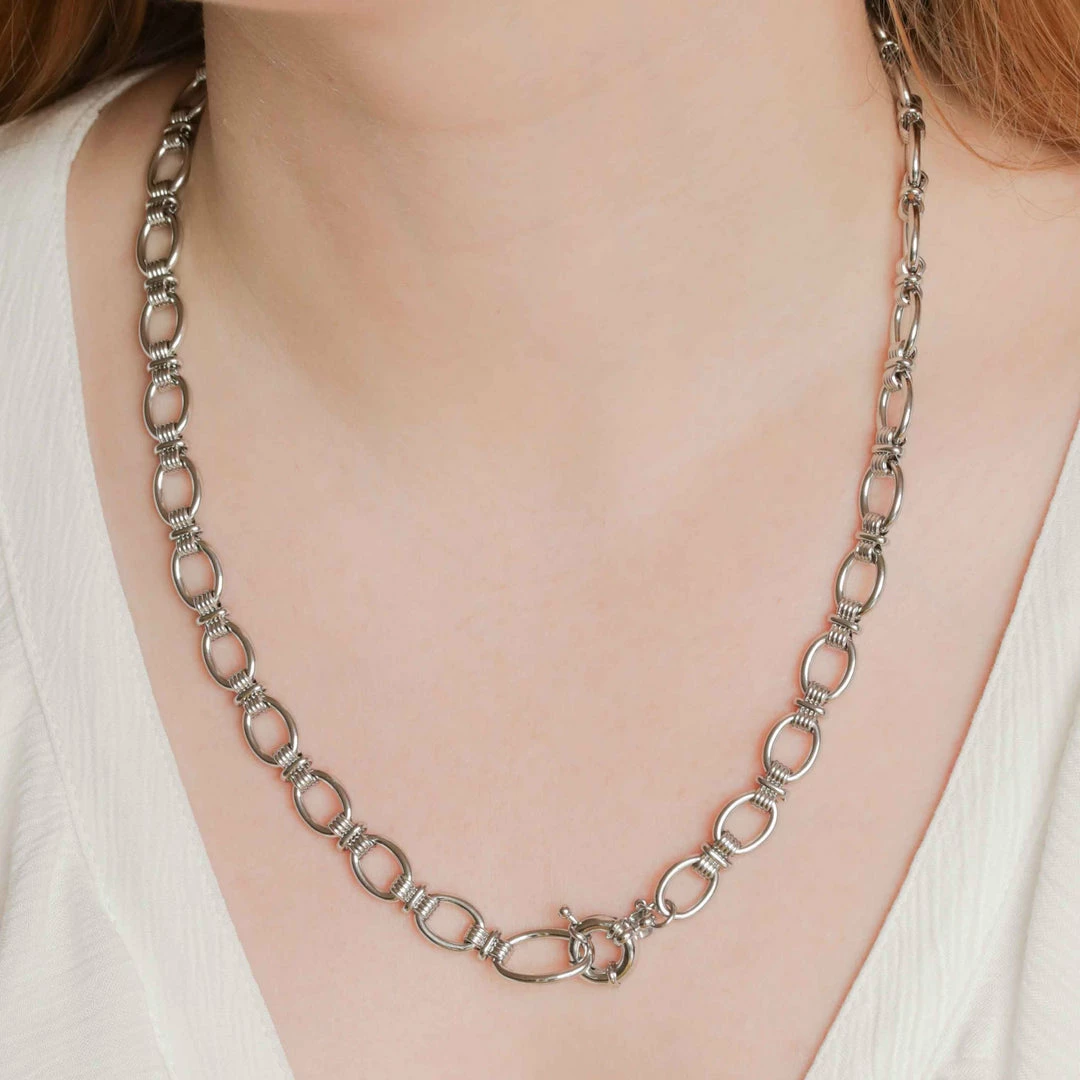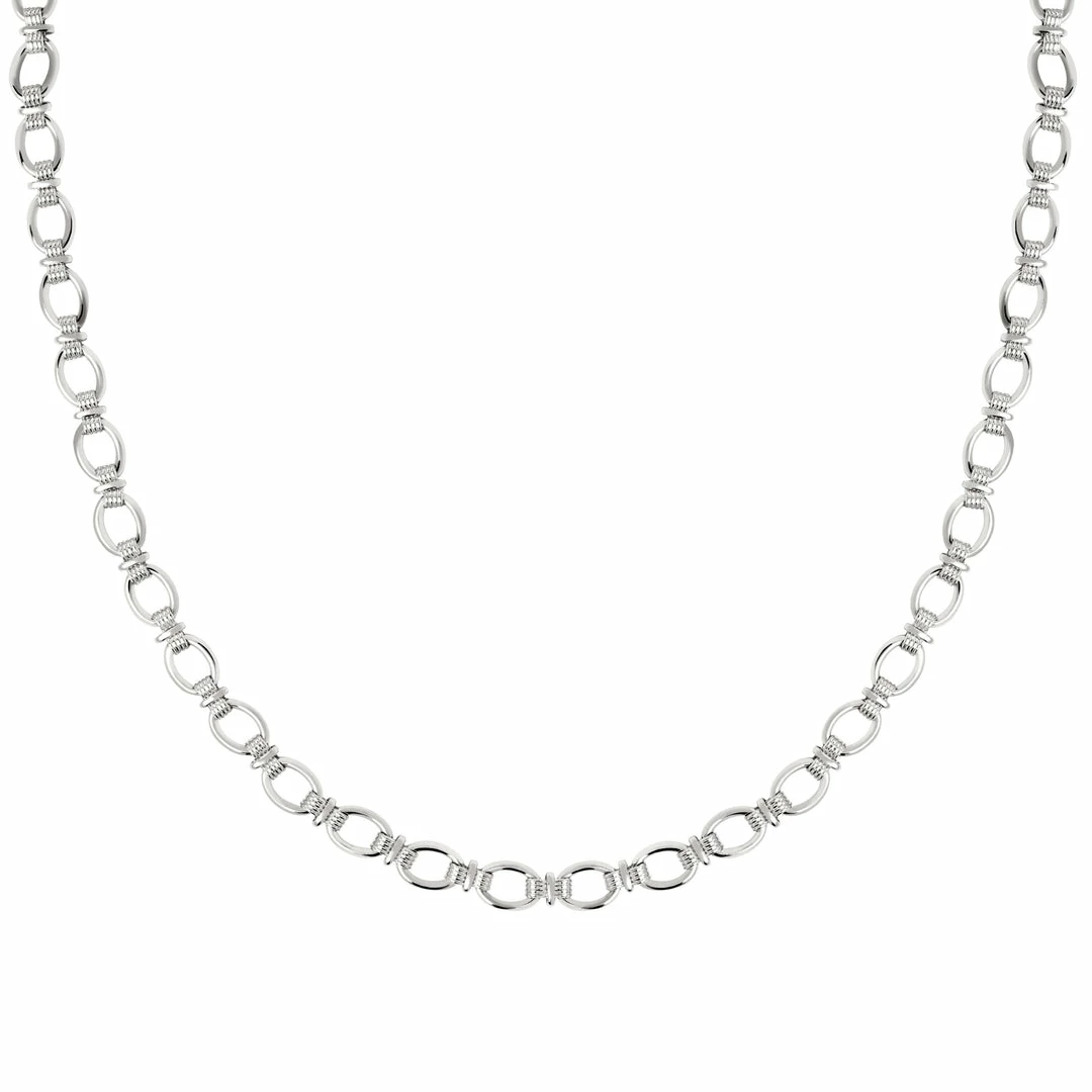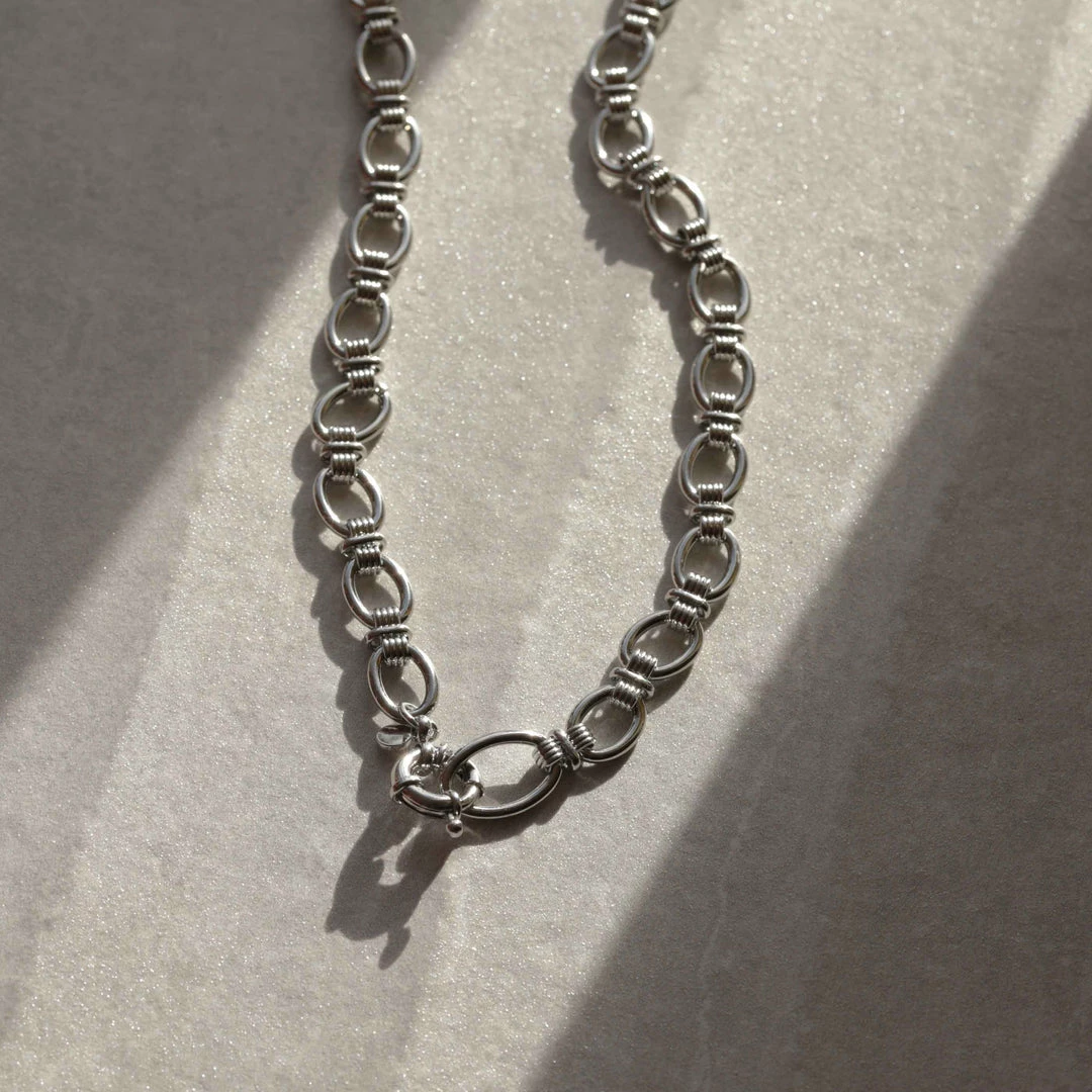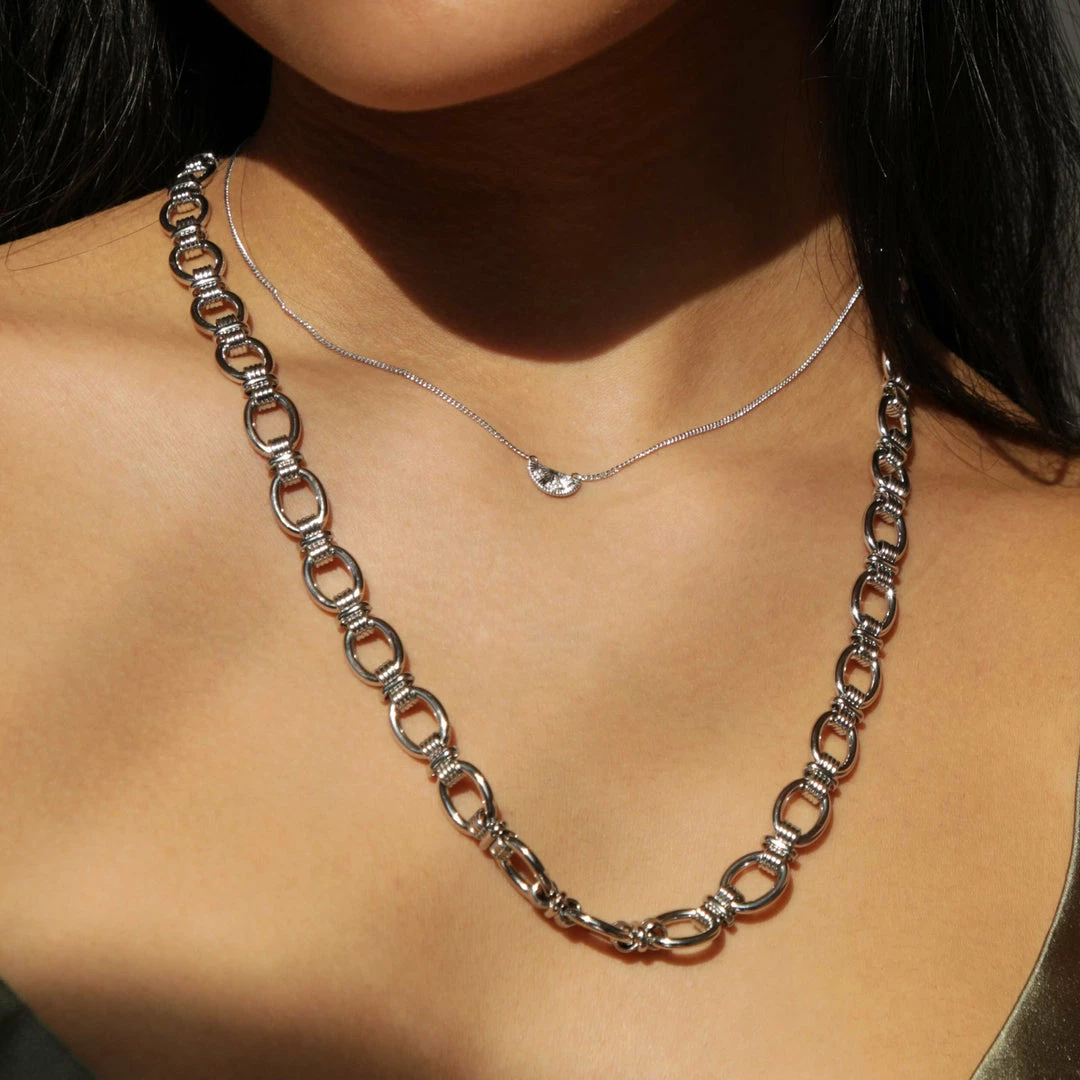 You’re glowing… The Ribbed Link Chain Necklace in Silver is the perfect accessory to accompany your post-lockdown look. Think parties, nights with friends & holiday moments. Beautifully chunky, this chain features a subtle ribbed texture to add a luxe look. Wear with any of our other chain necklaces, or keep it simple and wear alone (it’s beautiful enough as it is).