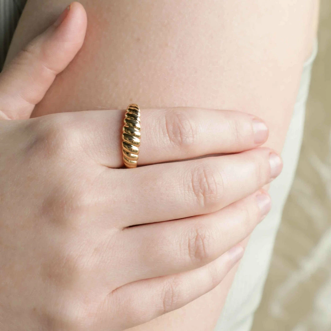 Our gold plated dome ring is definitely a ring stacking essential that you can wear with other chunky rings for a trendy luxe look or wear it alone for a chic Parisian vibe. Match this piece with our Rope Dome hoops or soften it up with a minimalist bracelet.