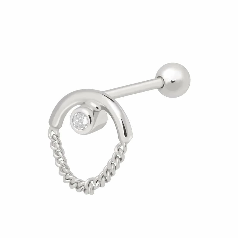 The perfect barbell to join your A&M ear party. The classic design with an edge you have all been waiting for. The Arched Diamond Chain Barbell Earring in Silver is sure to be your new favourite piece. The perfect versatile piece which can be worn from your helix to your lobe, meaning the stacking possibilities are endless. You’re welcome. Made from Sterling Silver.
