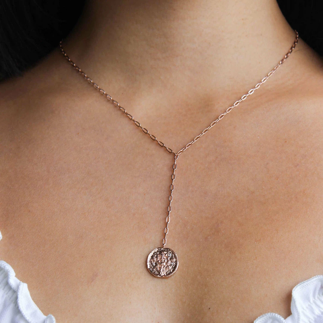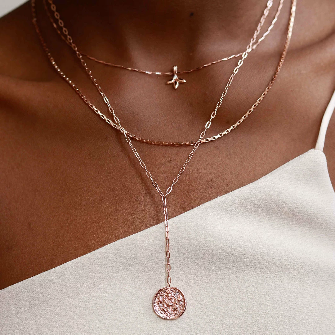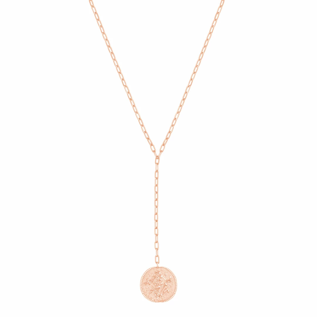 Dainty, rose gold and with a hint of sparkle – just how we like our jewellery. The Blossom Coin Lariat Necklace in Rose Gold features a linked chain with a pretty coin pendant, which is completed with super subtle cubic zirconias.