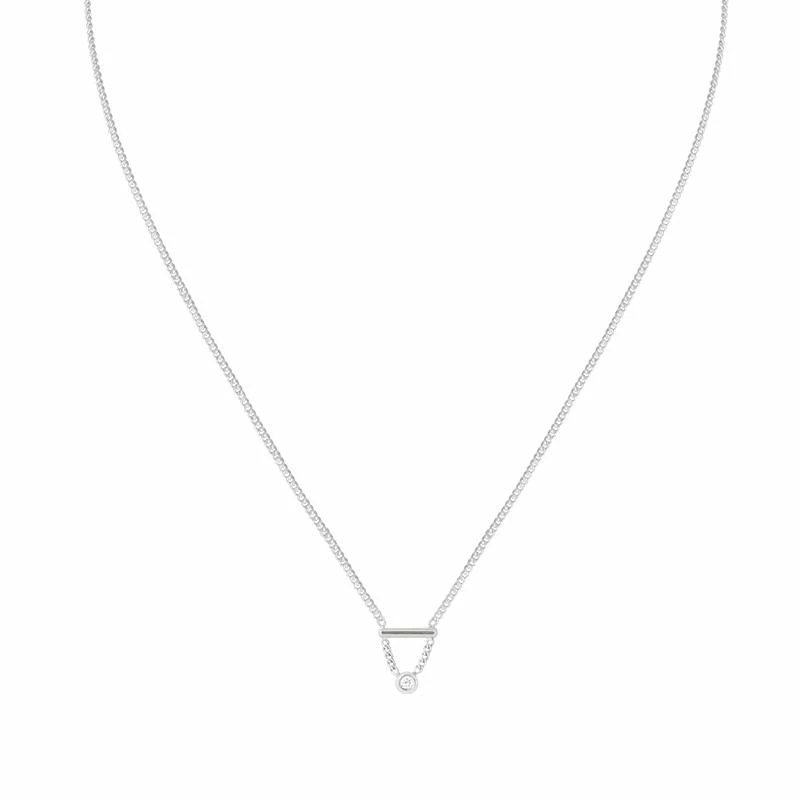 Delicate details in the Diamond Bar Necklace in Silver. The glistening diamond floats on a gold chain and will add abit of sparkle to any outfit. Made from Sterling Silver and Rhodium plated.