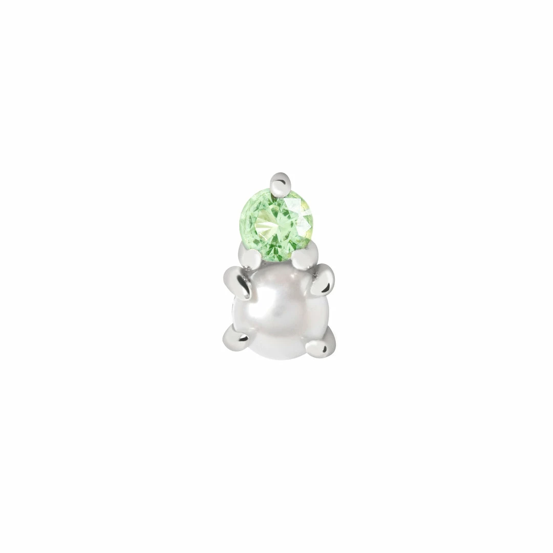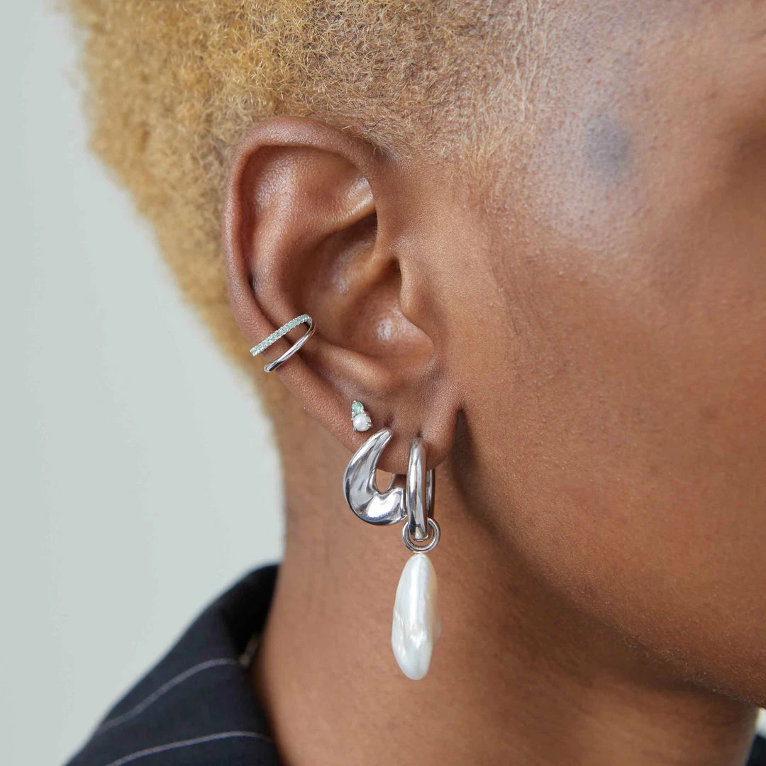 Give your piercings the pearls they deserve with the Gleam Barbell in Silver. Featuring a pearl inlay with a sparkling sage green cubic zirconia above, this barbell is a chic way to draw (much needed) attention to your piercings. Wear with our Gleam Huggies & our Harmony Aventurine Necklace for a colourful Serene Collection look.
