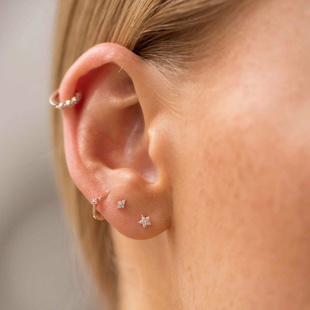 You already know we absolutely love a piercing and our latest barbell earring range is for all of you wanting to add a little glam to your new piercing. Here is a “how to”.