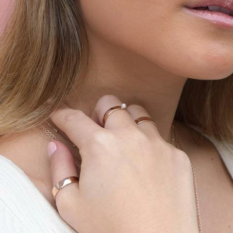 The Pearl Signet Ring is the ultimate timelss classic. The original design has undertaken a pearl makeover which makes this piece a season must have. Wear alone or stack with our simple band rings to complete the look. You can thank us later. Sterling silver and rose gold plated.