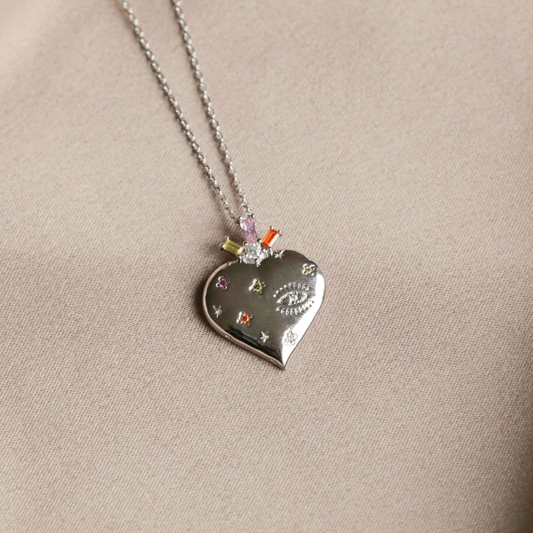 It’s the summer of self-love here at A&M, so why not send a little something to you, from you? The Serendipity Pendant Necklace in Silver is in a heart design to remind you to take a moment for yourself. It is engraved with delicate mystic details, and features an eye motif to symbolise protection ~ whilst rainbow stones add summer vibes. Complete the Reverie Collection stack by adding the Spectrum Chain Necklace for a statement look.